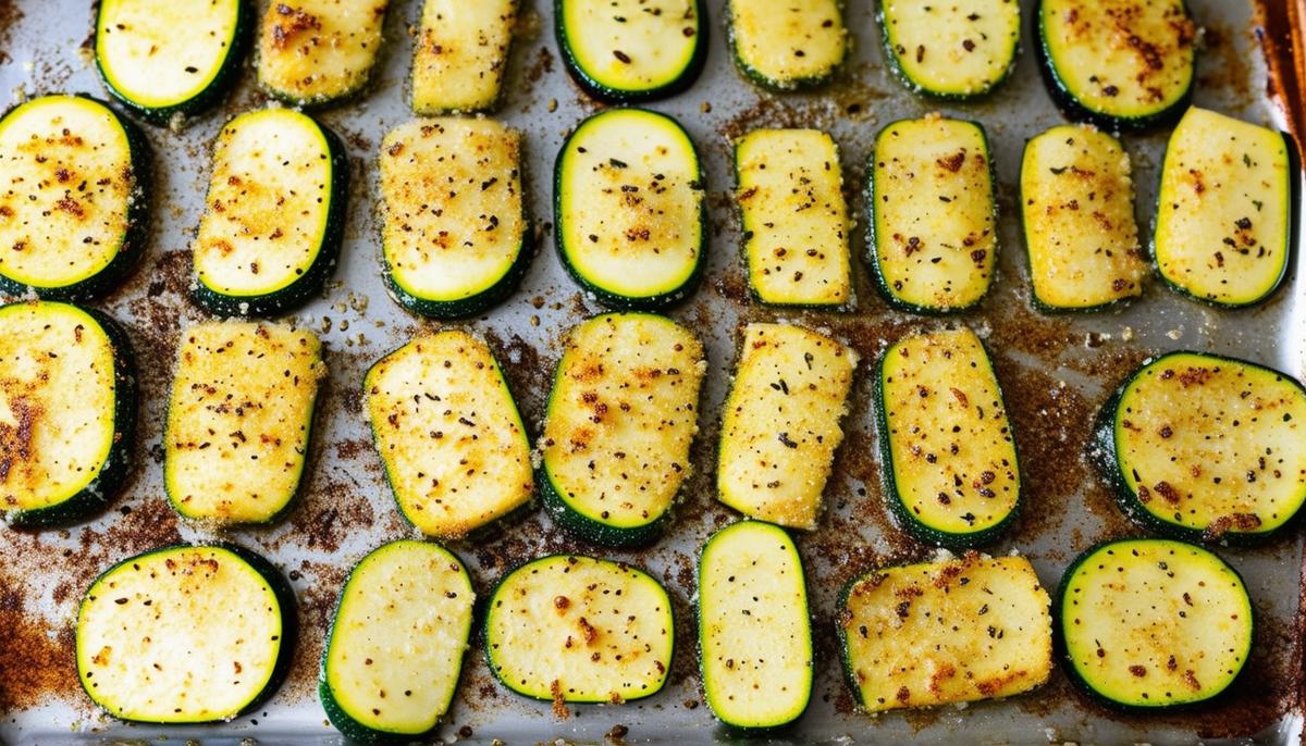 - Salt zucchini slices and let sit for 10 minutes. Pat dry and roast for 10 minutes.